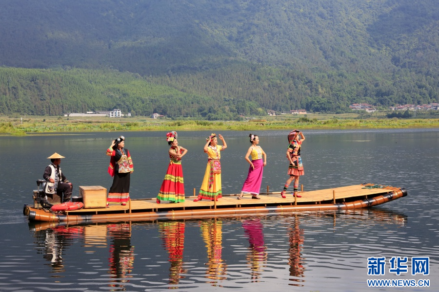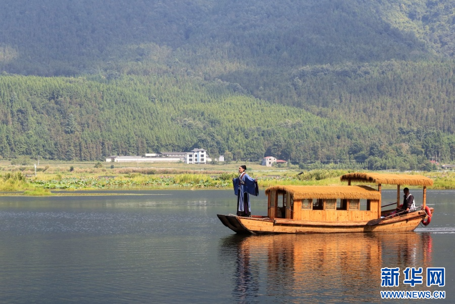 “徐霞客”带领游客领略湖光山色(830日摄)。新华网发(杨亦麟 摄)