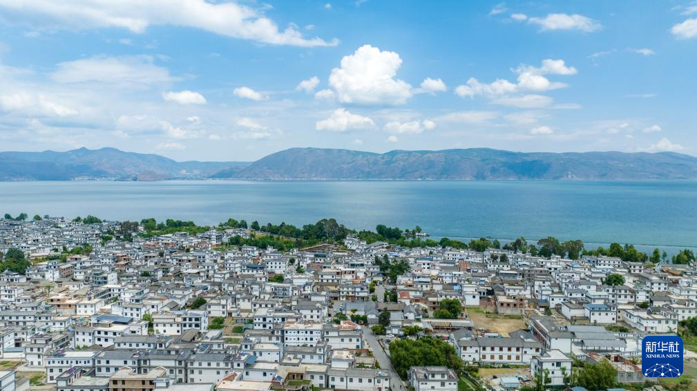 云南省大理市古生村与洱海风光(无人机照片,5月6日摄)。新华社记者 胡超 摄