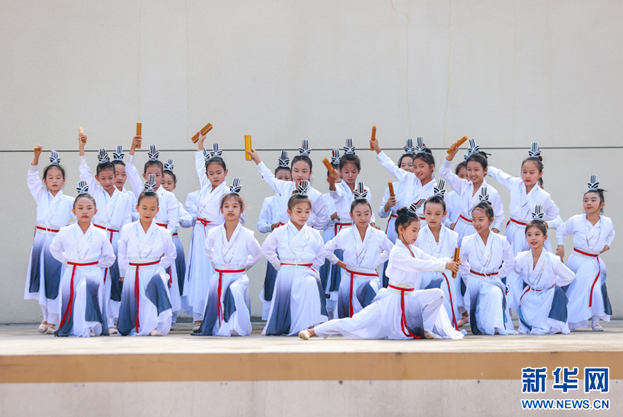 9月2日,云南省开远市东城小学,舞蹈兴趣小组的同学在升旗仪式后为同学们表演舞蹈。新华网发(陶家淇 摄)