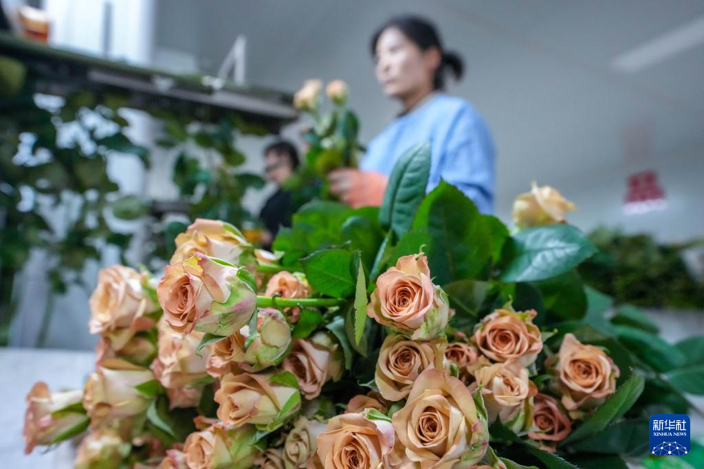 延长瓶插期,不仅需要在采后处理技术上创新,也要在品种选育上发力。除基本的观赏和产量性状外,研究团队还重点考察花卉的采后性状,筛选瓶插期长、开放性能好的新品种。中国农业大学教授、中农大-云天化花卉联合研究中心主任高俊平介绍,团队成功选育出的“菲韵”和“冰茶”两个月季品种均具有抗衰老、耐贮运的优良特性,受到市场欢迎。