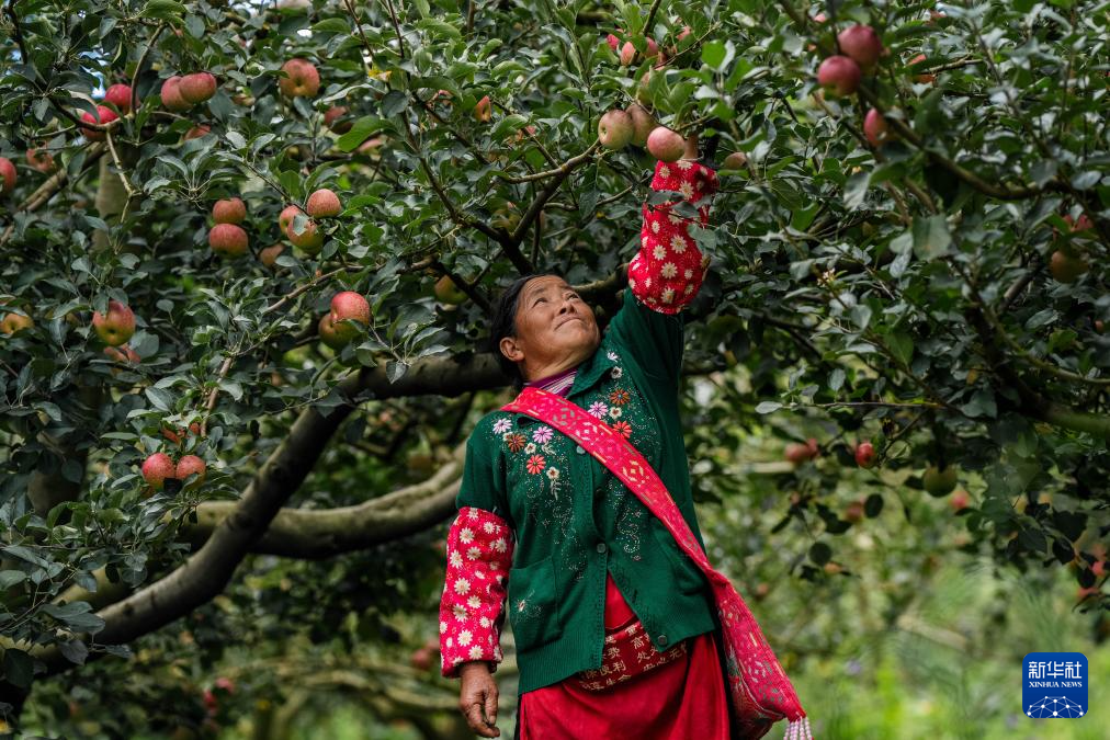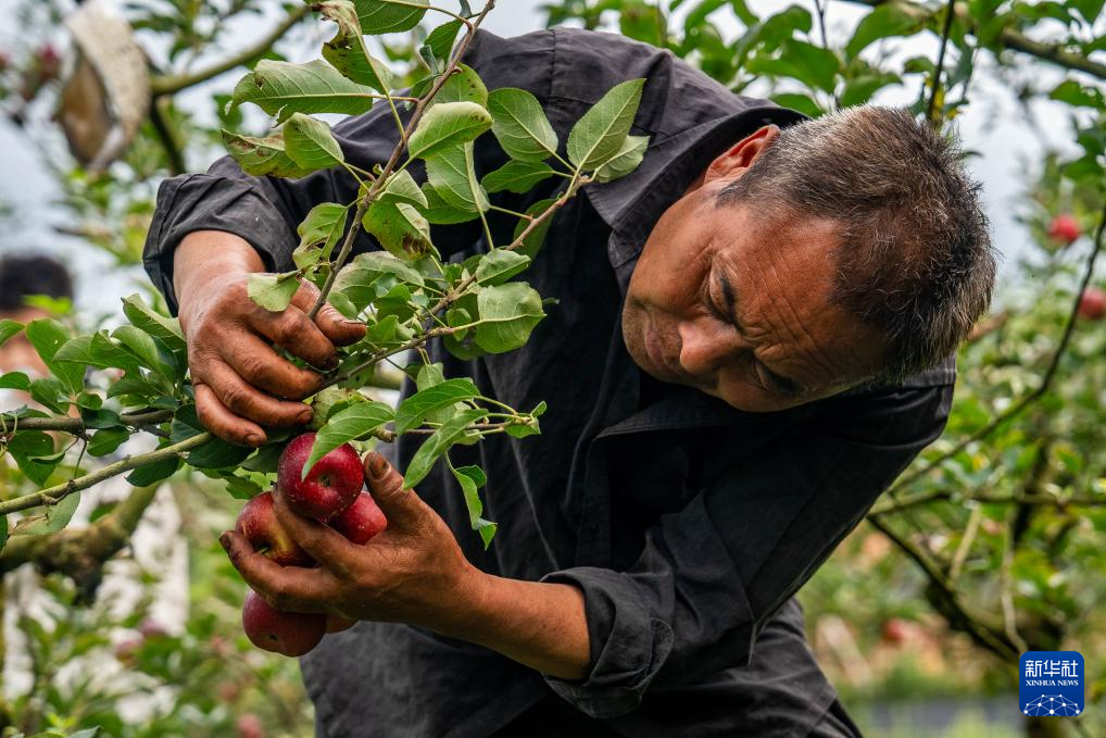 9月3日,云南省红河州蒙自市西北勒乡的农户在采摘苹果。新华社记者 胡超 摄