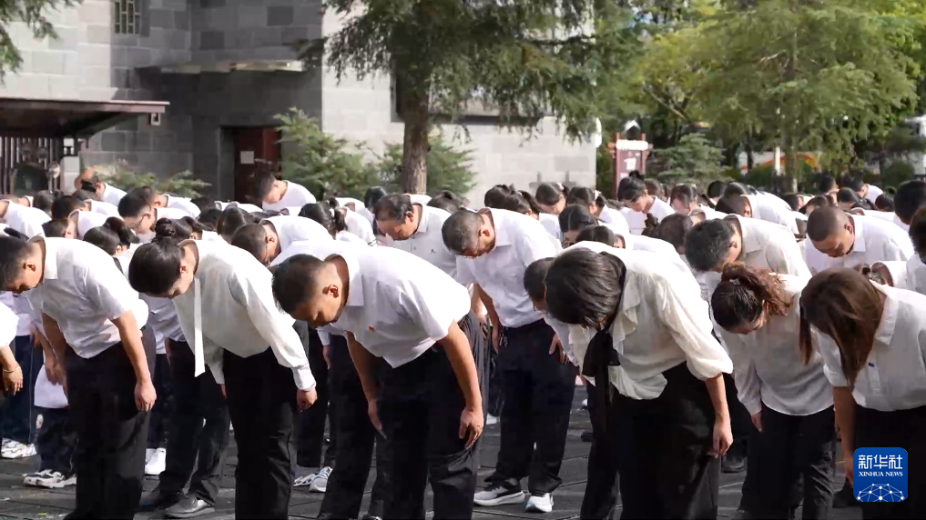 9月3日,云南省腾冲市举行2024年抗战胜利纪念日活动,纪念中国人民抗日战争暨世界反法西斯战争胜利79周年。在滇西抗战纪念馆警钟广场,干部群众及学生通过向民族英烈默哀、敬献鲜花、诗歌朗诵、红色故事分享等方式深切缅怀民族英烈。