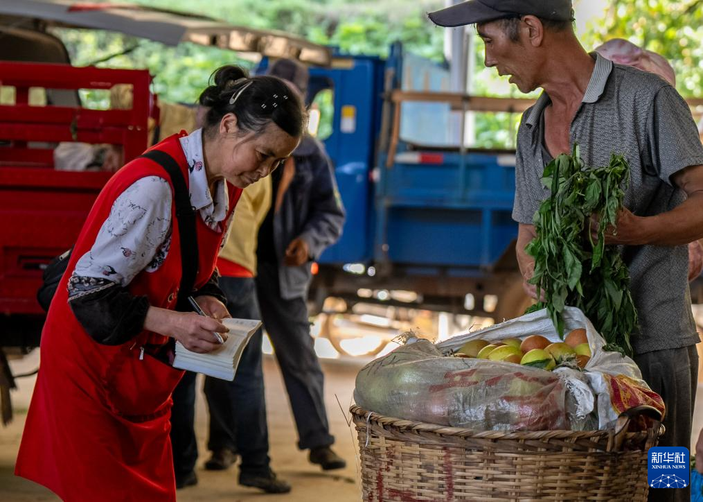 9月5日,红河州个旧市鸡街镇的果农在售卖鲁沙梨。新华社记者 胡超 摄