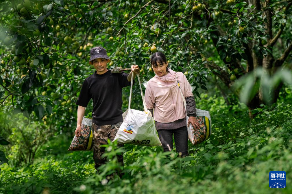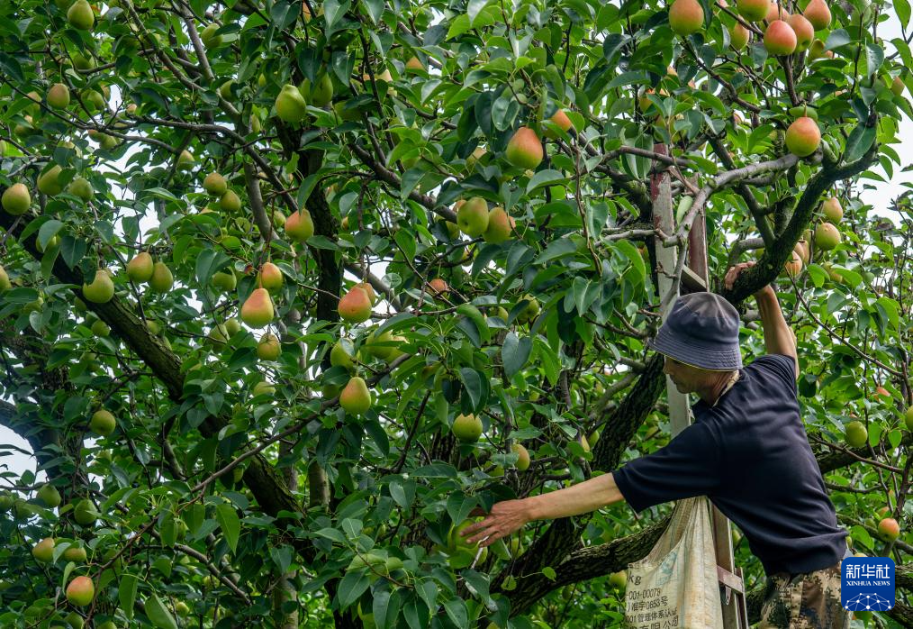 9月5日,红河州个旧市鸡街镇的果农在采摘鲁沙梨。新华社记者 胡超 摄
