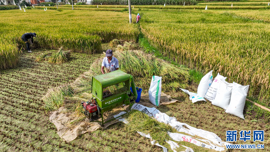 9月4日,云南省曲靖市沾益区天生坝村,村民忙着收割水稻。新华网发(孙文来 摄)