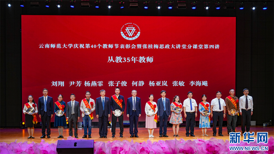 表彰光荣从教35年的教职工(9月10日摄)。新华网发(云南师范大学 供图)