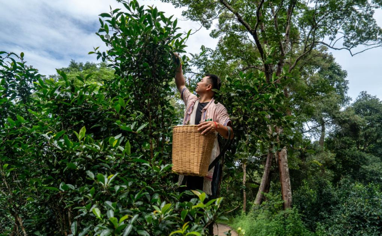 近日,云南省普洱市澜沧拉祜族自治县景迈山进入秋茶采摘期。