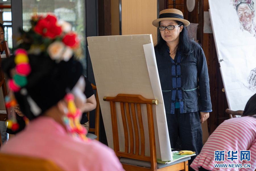 熊登奎在画布朗族妇女(8月14日摄)。新华网发 李浩 摄