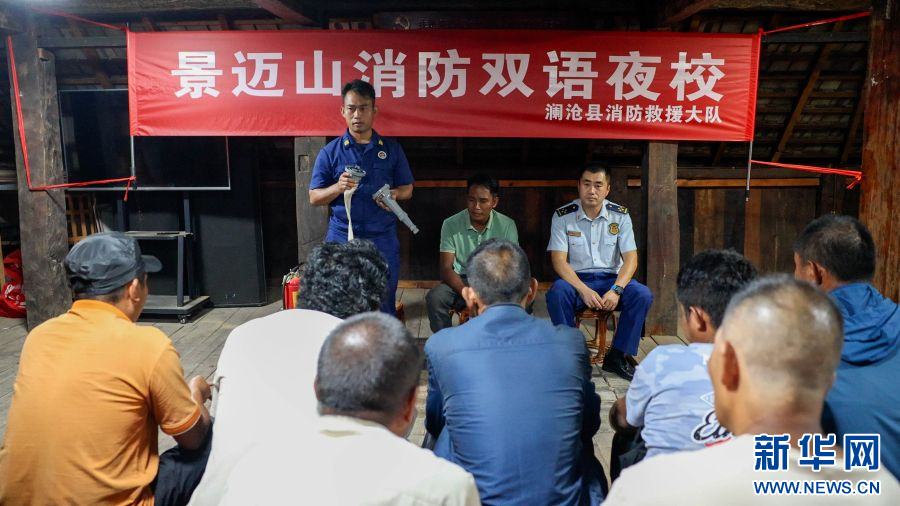 景迈消防站开展消防双语夜校(8月12日摄)。新华网发 李浩 摄