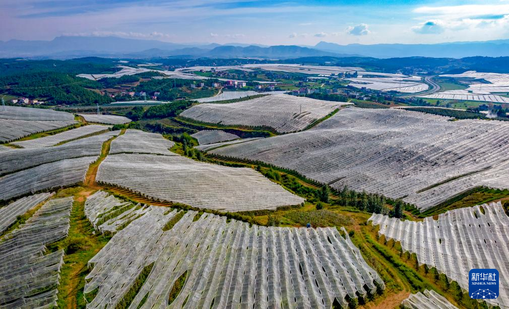 这是9月29日拍摄的昭通市超越苹果基地一景(无人机照片)。新华社记者 陈欣波 摄