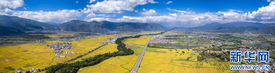 航拍洱源县稻田(资料图)。新华网发(杨卓奇 摄)