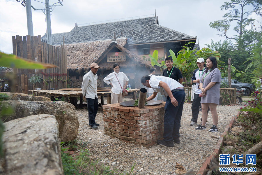 布朗族传统手工制茶技艺体验坊吸引游客驻足体验(9月26日摄)。新华网发 刘起 摄