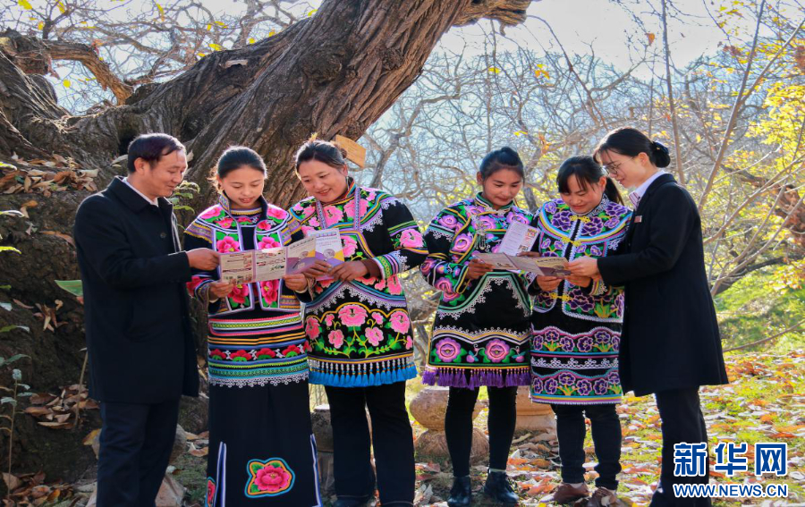 工作人员向彝绣绣娘讲解政策(资料图)。新华网发(云南农信社供图)
