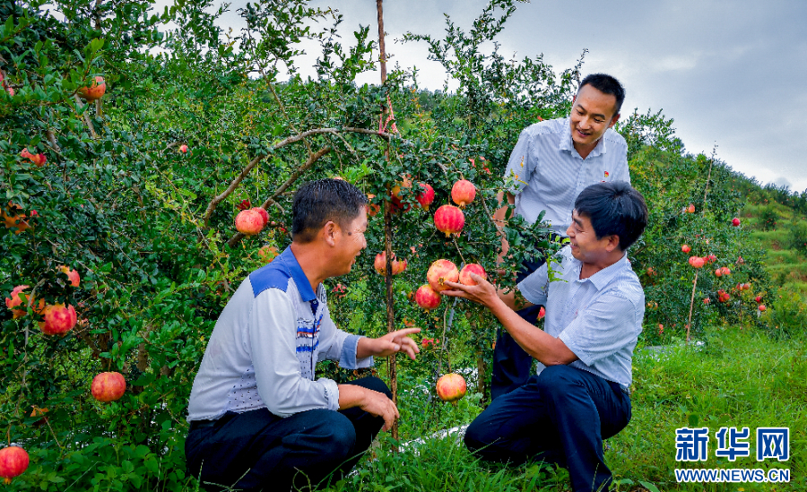 工作人员了解石榴种植情况(资料图)。新华网发(云南农信社供图)