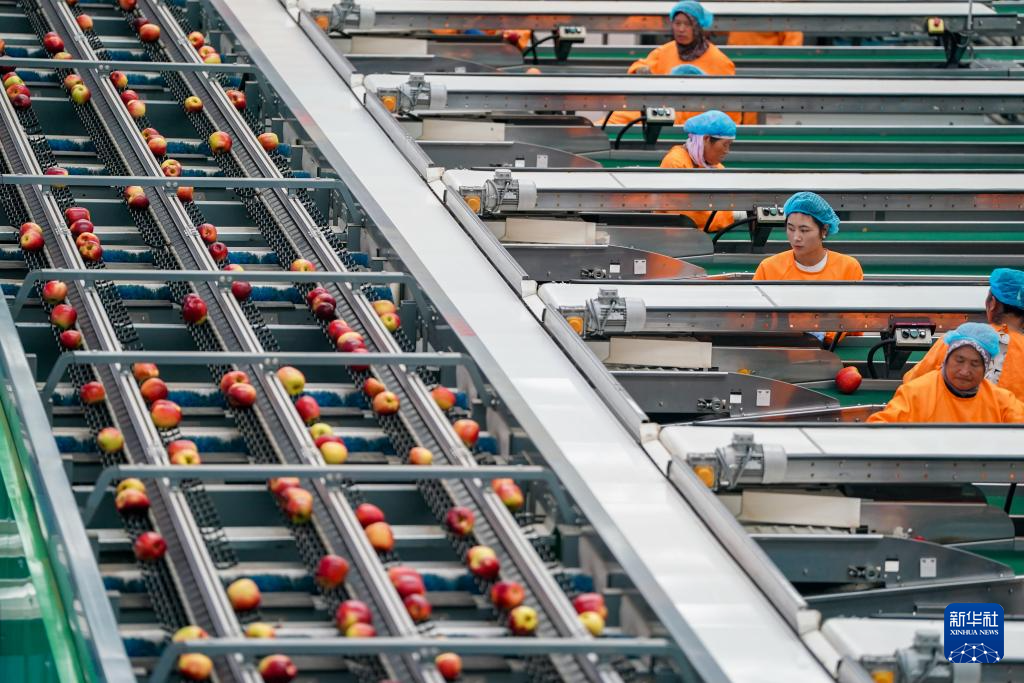 9月29日,工作人员在昭通超越农业有限公司苹果产业园区分选线上工作。新华社记者 陈欣波 摄