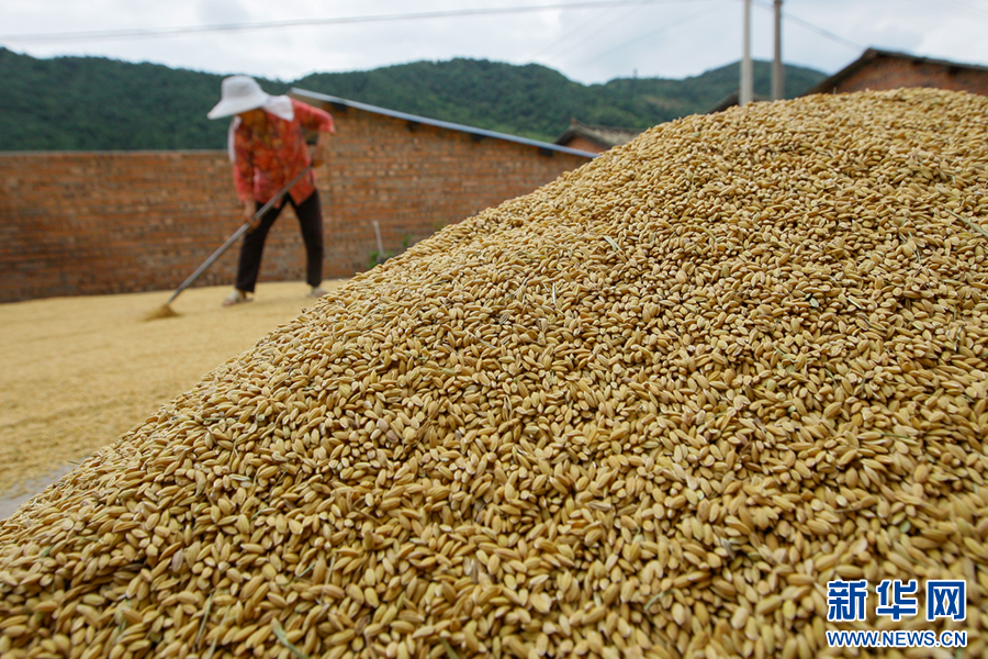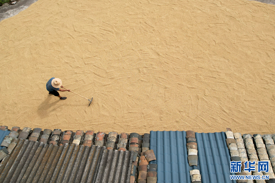 9月28日,云南省曲靖市沾益区威格村,农民正在晾晒稻谷。新华网发(杨俊鹏 摄)