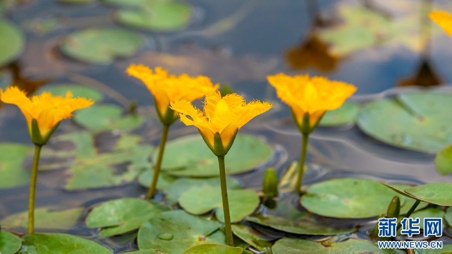 “参差荇菜,左右流之。”如果你想邂逅颇具浪漫色彩的水生植物荇菜,那么地处云南洱源县的茈碧湖,绝对是一个不错的选择。秋日的茈碧湖,“一湖碧水半湖荇”,连片的荇菜花开正盛,与蓝天、碧水、芦苇相映成趣,共同构成了一幅动人的生态画卷。(罗新才 李雪梅 摄影报道)
