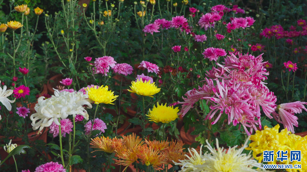 秋日,云南省楚雄彝族自治州武定县狮子山菊花盛放,五彩斑斓,引人入胜。