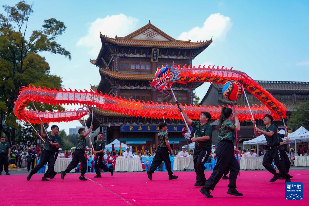 10月19日,湖北大学龙师团龙狮队在传统舞龙项目中比赛,最终他们获得该项目铜奖。新华社记者 陈欣波 摄