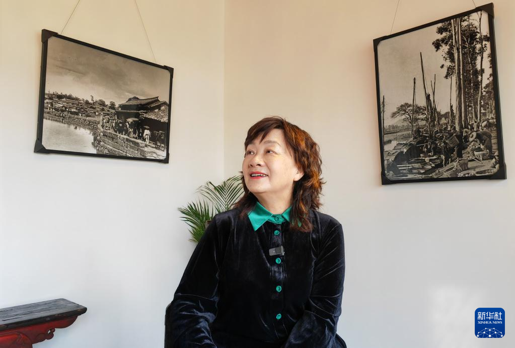 王益群在云南昆明介绍她收藏的老照片(4月24日摄)。新华社记者 林碧锋 摄