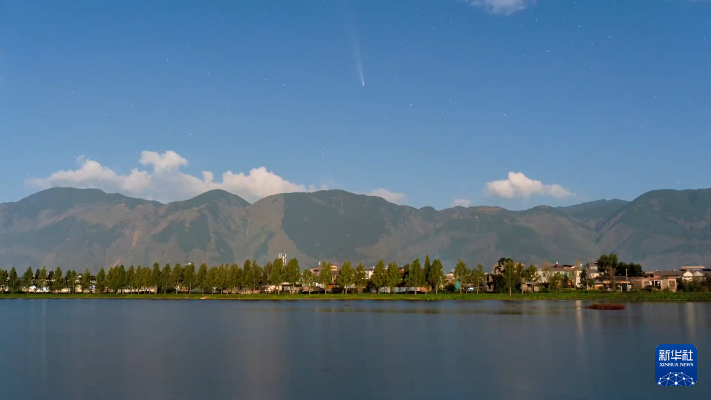 10月中下旬,一颗带有黄色彗尾的彗星成为天文爱好者的观测热点。在昆明晋宁和大理洱源,摄影爱好者用延时摄影捕捉了这一天文奇观。