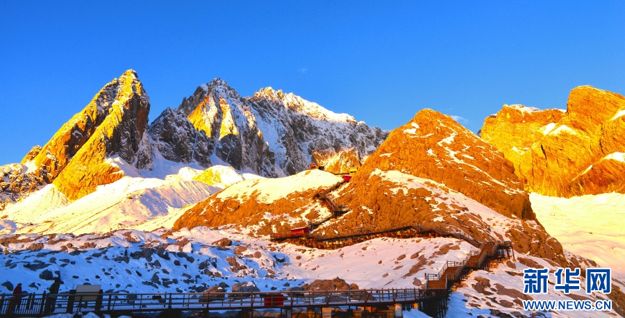日出时的玉龙雪山(资料图)。新华网发(丽江市委宣传部 供图)