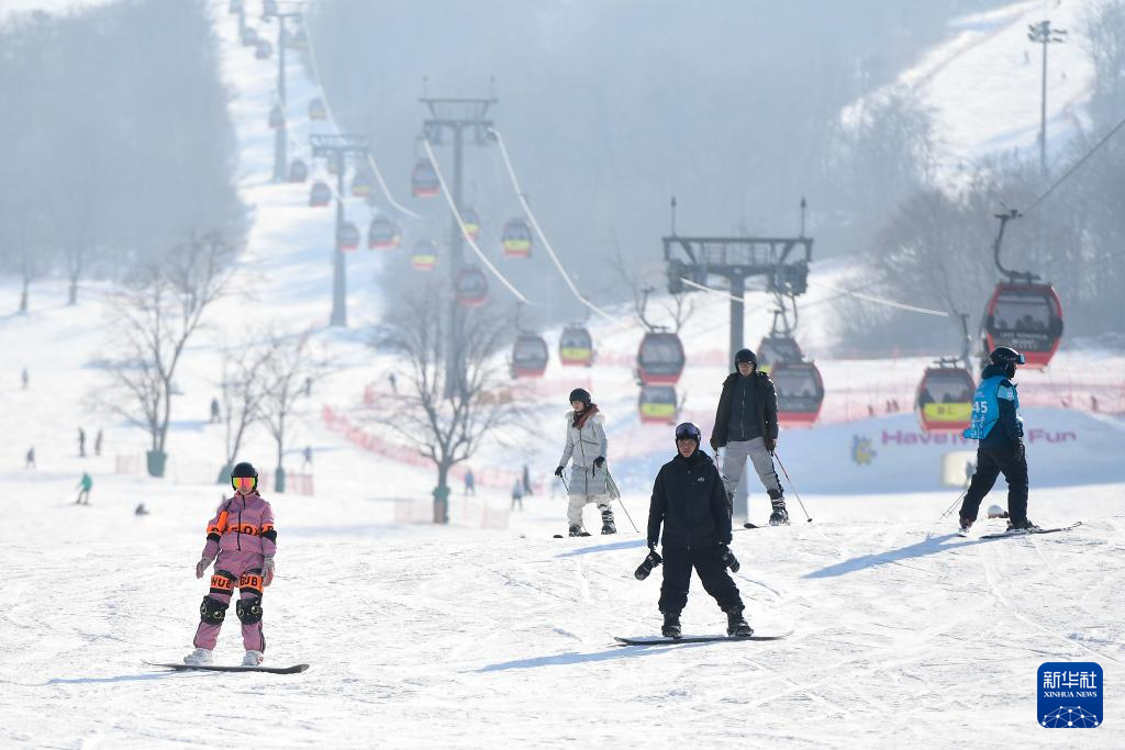 2月11日,滑雪爱好者在吉林市万科松花湖度假区滑雪。新华社记者 张楠 摄