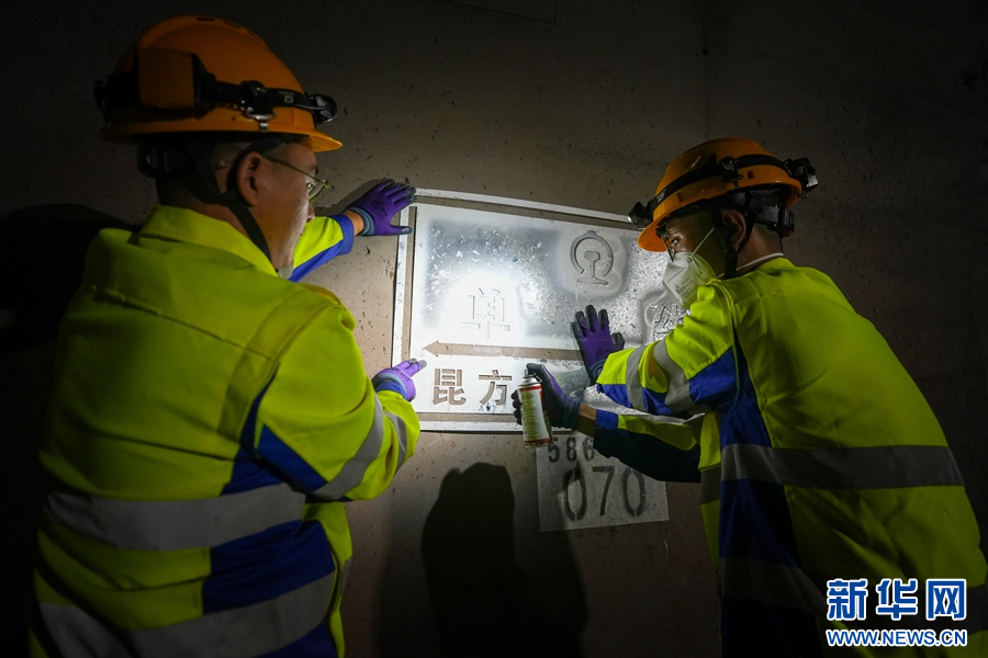 作业人员在隧道里对排水沟进行检查(摄于10月29日)。新华网发(殷学合 摄)
