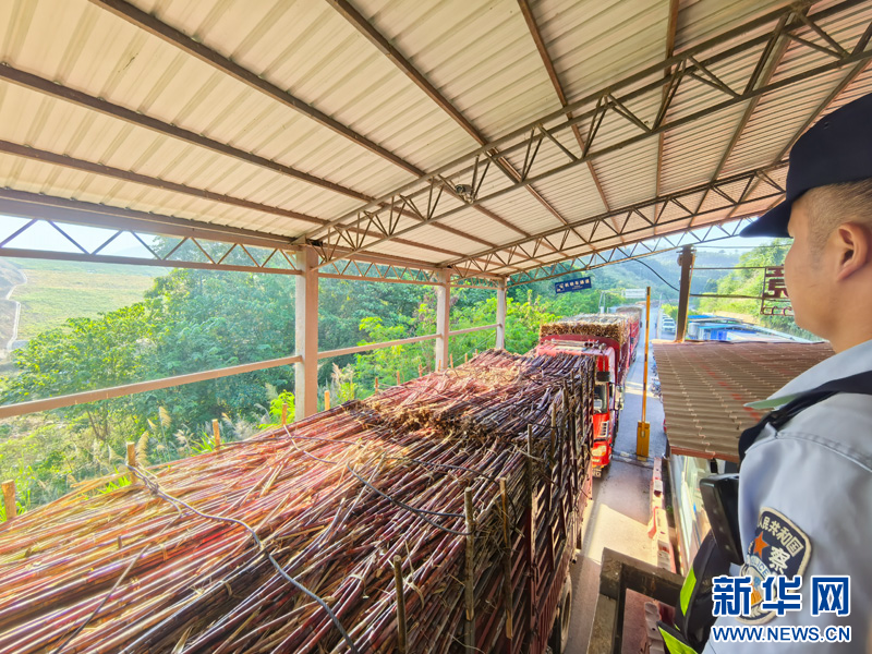 移民管理警察对入境甘蔗运输车辆进行检查 (10月29日摄)。新华网发(李扬摄)