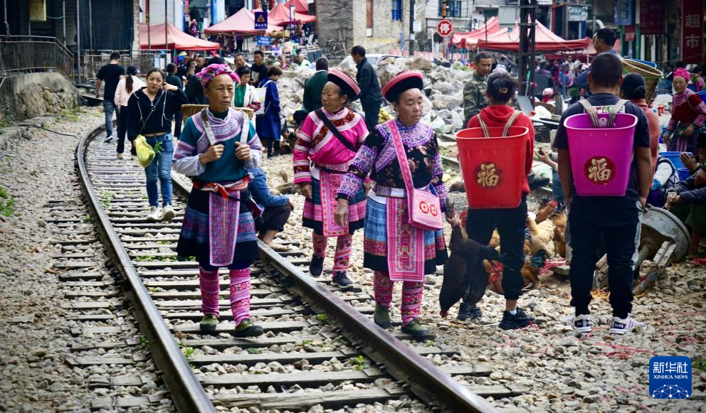 2023年2月20日在云南省红河州屏边县白河镇拍摄的“火车集市”。新华社发(刘红波 摄)