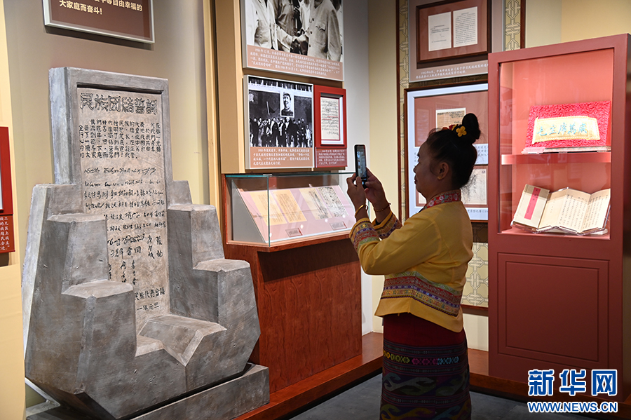 赵珍拍摄普洱民族团结誓词碑样品(11月8日摄)。新华网发(中国共产党早期北京革命活动纪念馆供图)