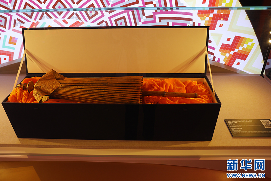展柜内存放着召存信等进京献上的金伞(11月8日摄)。新华网 范芳钰 摄