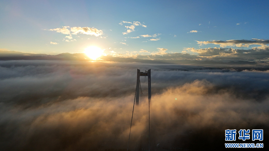 云南龙江大桥立于云海之中(11月11日摄)。新华网发(赵辉 摄)