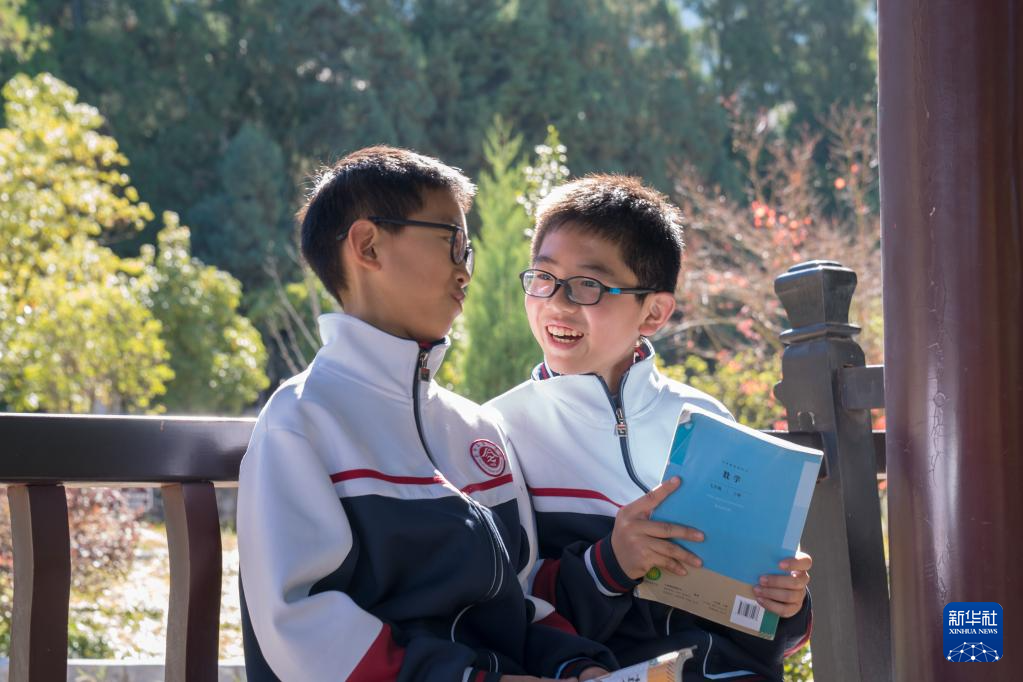 11月12日,在云南省会泽县第一中学,学生在课间休息时间聊天。新华社发(彭奕凯 摄)
