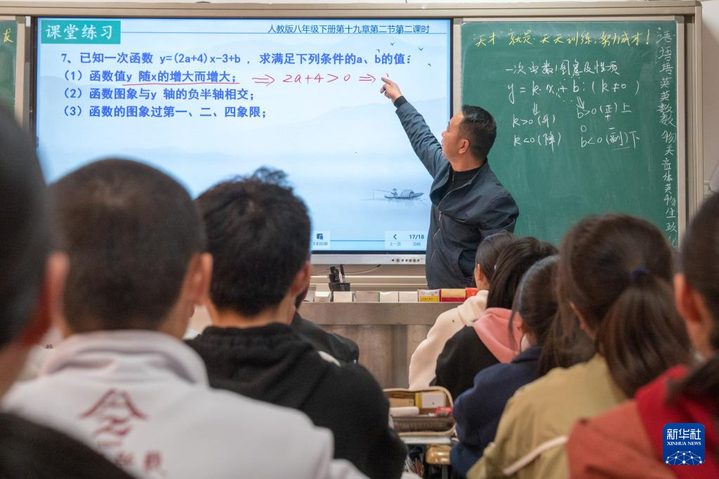11月12日,在云南省会泽县第一中学,老师在给学生上数学课。新华社发(彭奕凯 摄)