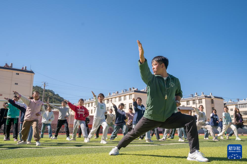 11月12日,在云南省会泽县第一中学,老师在给学生上体育课。新华社发(彭奕凯 摄)