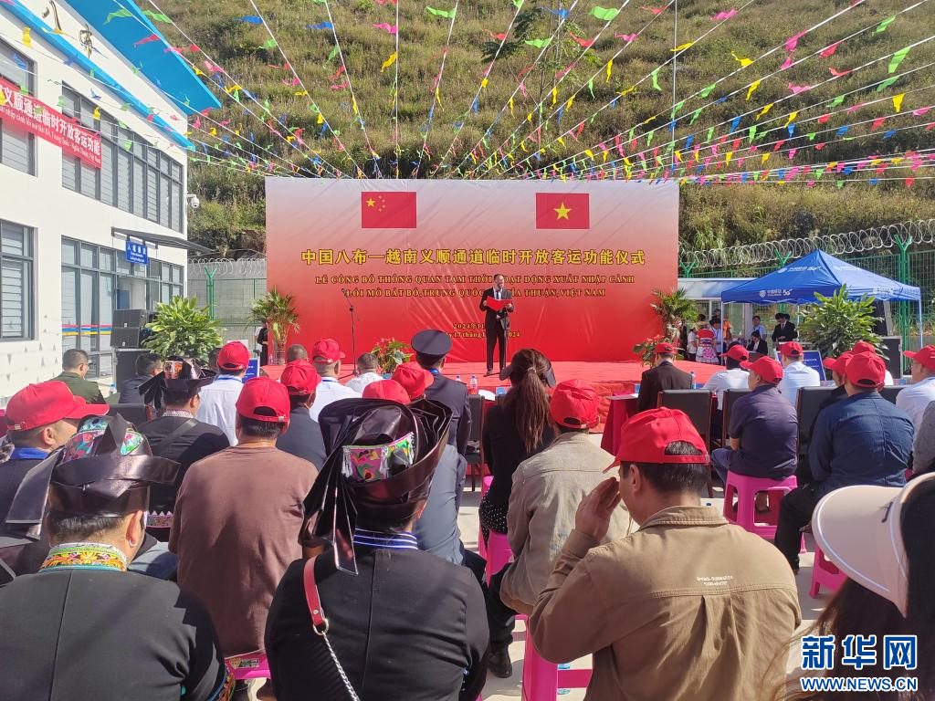 新华网昆明11月18日电 11月17日,中国文山壮族苗族自治州人民政府与越南河江省人民委员会共同举行庆祝仪式,临时开放中国杨万-越南百德通道、中国八布-越南义顺通道客运功能。