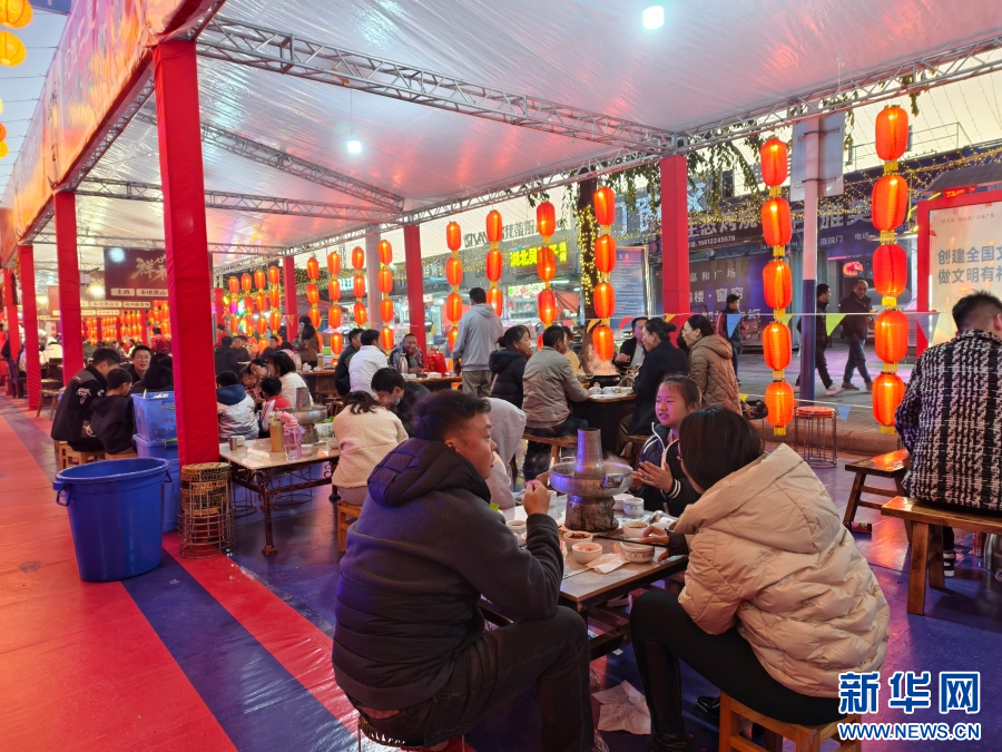 市民游客同吃火塘宴(11月29日摄)。新华网发(张晨 摄)