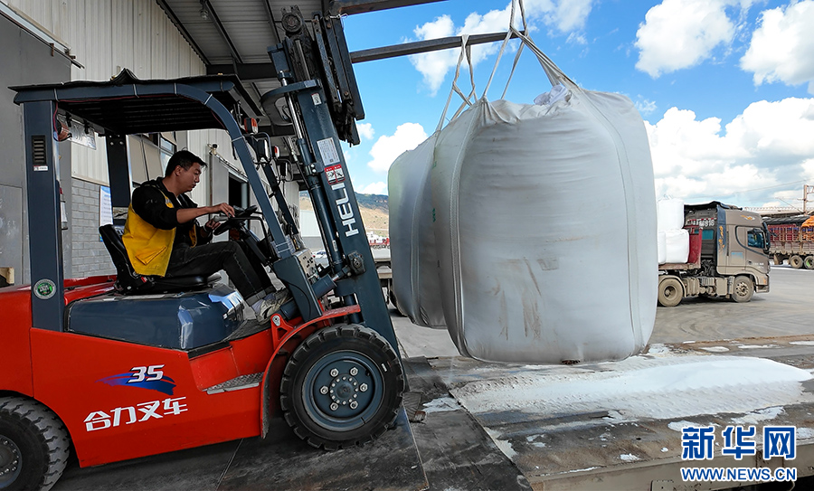 叉车正在运送化肥(11月21日摄)。新华网发 徐华陵 摄