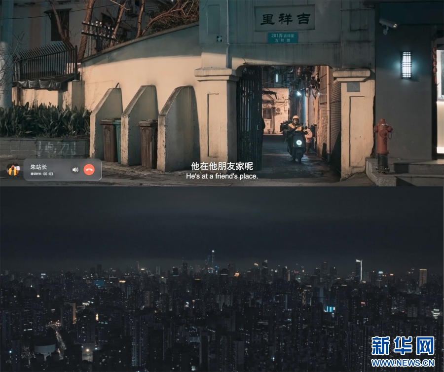 灯火闪烁的繁华都市与线条交错的老弄堂