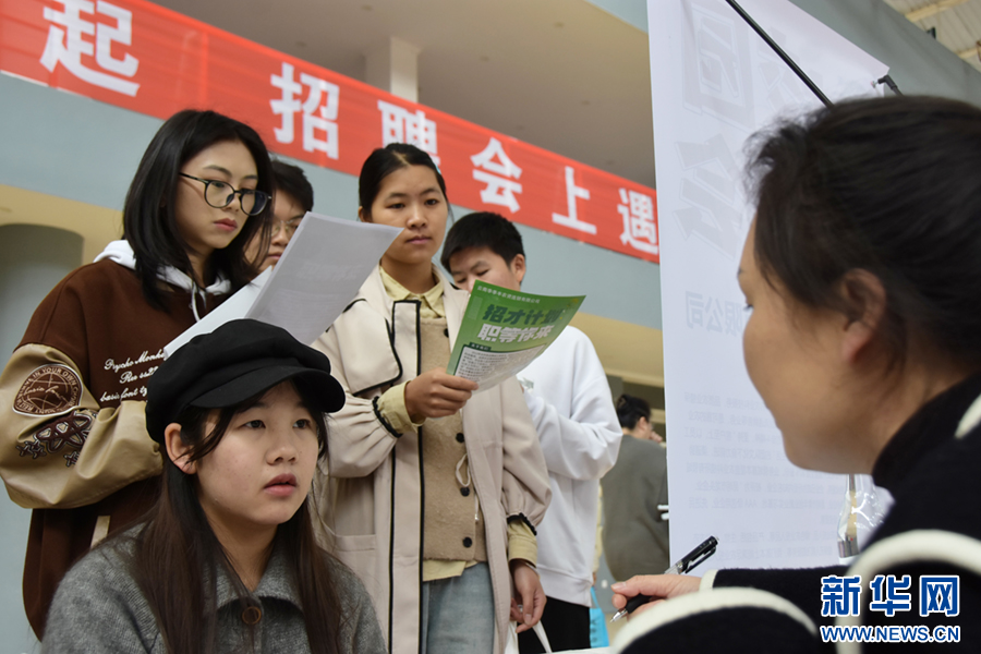 12月13日,在红河学院专场招聘会上,求职者询问岗位信息。新华网发(薛莹莹 摄)