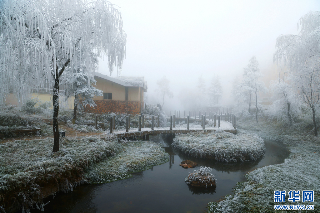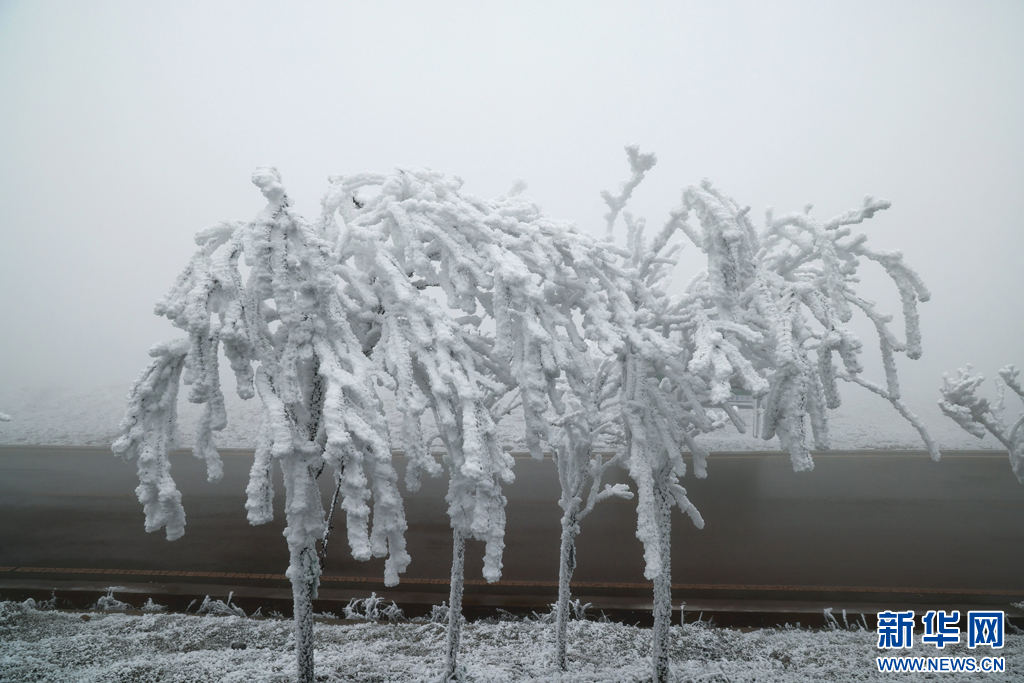 云南大山包黑颈鹤国家级自然保护区道路旁的雾凇(12月15日摄)。新华网发(郑远见 摄)
