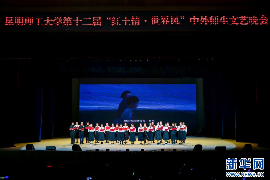 “梦想起航 世界同行”——昆明理工大学第十二届“红土情·世界风”中外师生文艺晚会27日在呈贡校区红土会堂举行。来自巴基斯坦、老挝、泰国、越南、孟加拉国、缅甸、柬埔寨等44个国家的来华留学生与昆工师生们欢聚一堂,共同见证多元文化在昆明理工大学的融合与绽放。