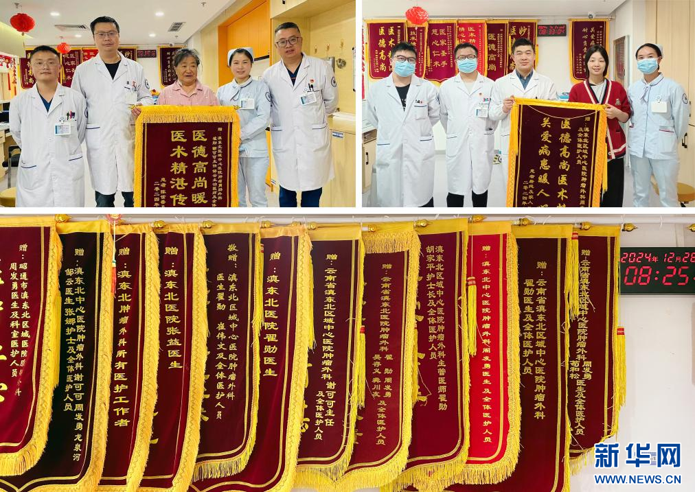 新华网昆明12月29日电(记者 周磊)近日,数名患者先后将锦旗送到位于云南省昭通市的云南省滇东北中心医院肿瘤外科,表达对医护人员的感激之情。