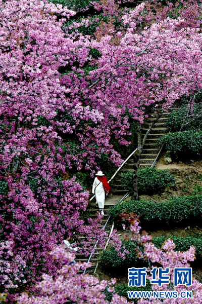 冬日,位于云南省大理白族自治州南涧彝族自治县境内的无量山樱花谷进入了冬樱花最佳观赏期,云海、茶园、冬樱花交相辉映,构成了如诗如画的无量山美景,吸引众多游客前来观赏游览。(完)(适志宏)