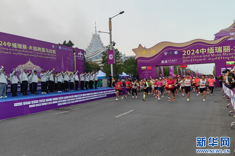 2024中缅瑞丽—木姐跨国马拉松开跑(1月5日摄)。新华网发(刘奕 摄)