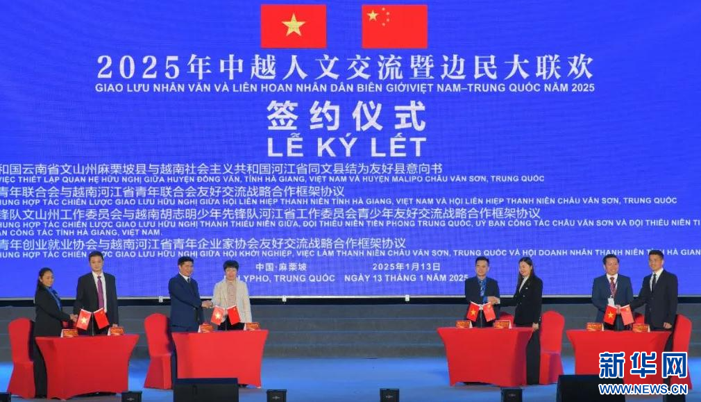 新华网昆明1月14日电 1月13日晚,“同唱友谊歌 携手创未来”——“文山·睦邻”2025年中越人文交流暨边民大联欢系列活动在云南省文山壮族苗族自治州麻栗坡县启动。中越双方边民欢聚一堂,共叙友谊、共商合作、共谋发展。