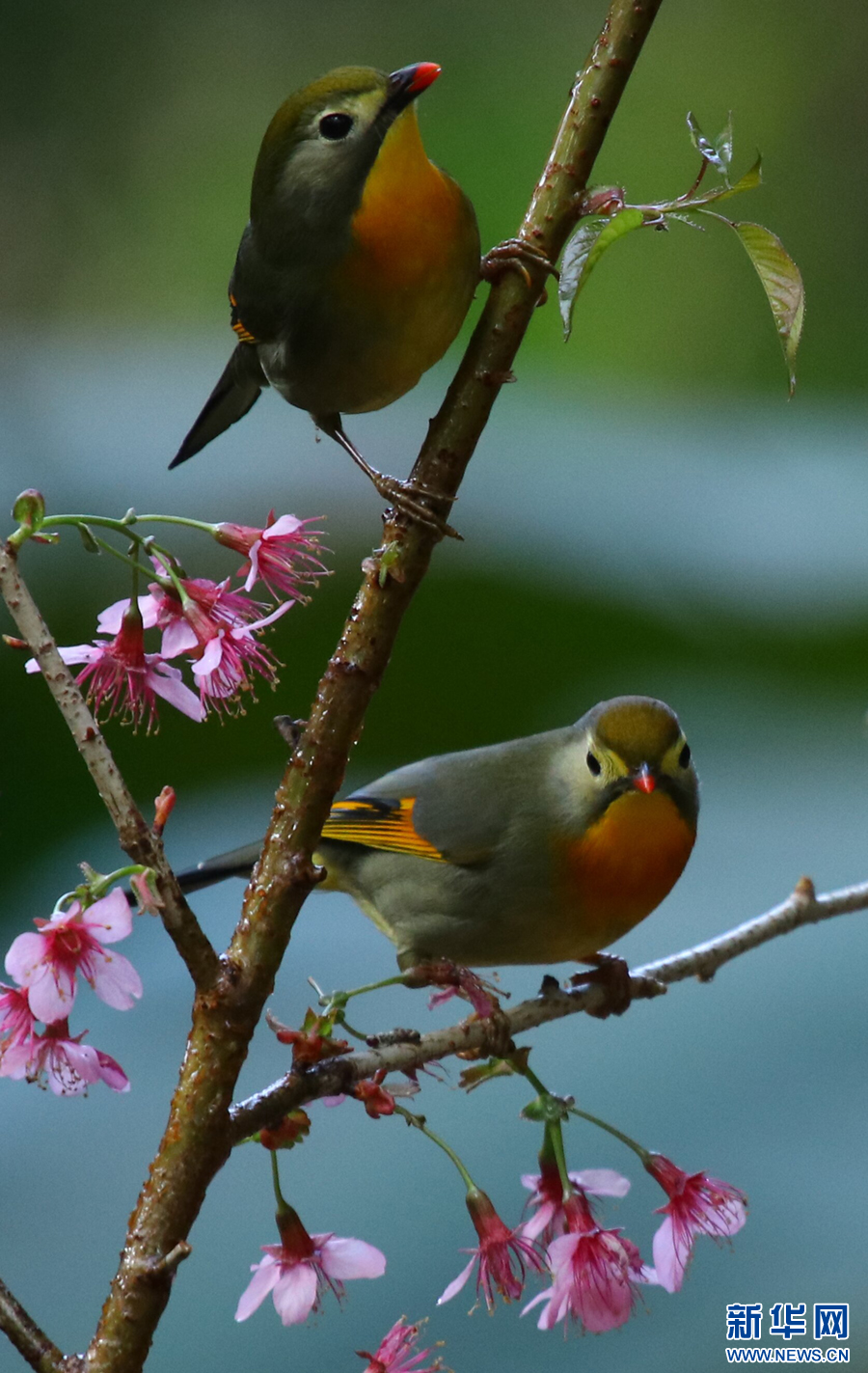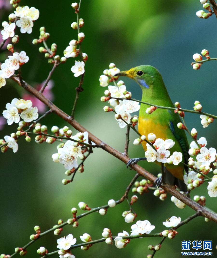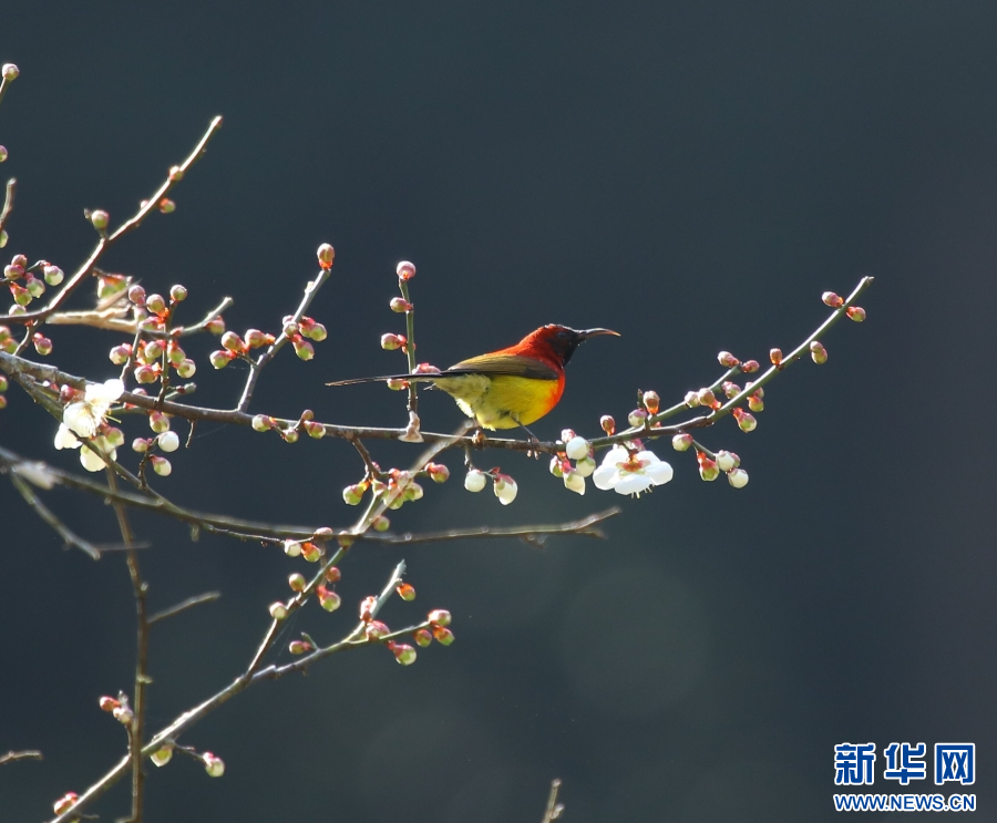 寒冷的冬日里,云南腾冲梅花初绽、樱花娇艳,引来鸟儿在花间嬉戏玩耍,构成了一幅美丽的花鸟图,为冬日增添上一抹亮色与芬芳。新华网发(赵辉 摄)