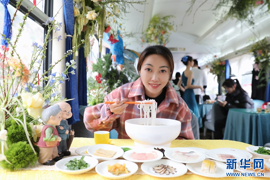 车厢内,云南青年表演民族山歌打跳,动听的山歌此起彼伏,让旅客零距离感受云南山歌文化的独特魅力;厨艺师傅邀请旅客共同制作鲜花过桥米线,品尝鲜花饼和玫瑰花饮等美食,感知云南与花共生、以花为食的浪漫。