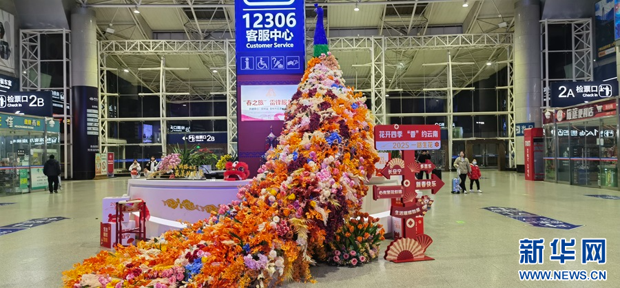“用一路鲜花,伴你回家”(1月14日摄)。新华网发(杨紫轩 摄)